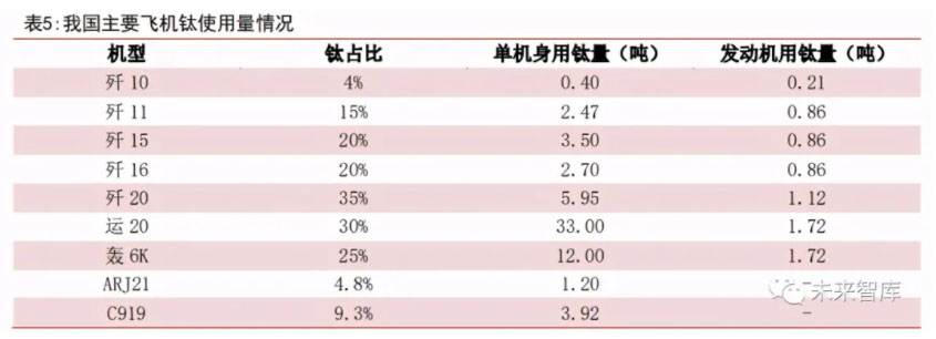 市場預計 C919 機身鈦使用量占重量的 9.3%,預計每架 C919 機身鈦使用量 4 噸左右。