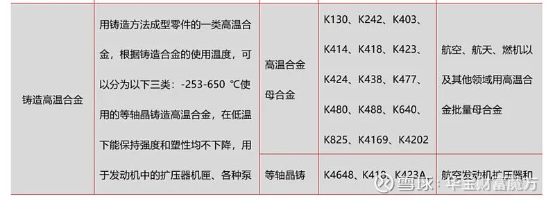 高溫合金按照工藝結構可分為變形高溫合金(占70%)、鑄造高溫合金(占20%)和新型高溫合金(粉末高溫合金、彌散強化高溫合金ODS);按照基體元素可分為鎳基(占80%)、鎳-鐵基(占14%)、鈷基(占6%)高溫合金;根據合金強化類型可分為固溶強化型高溫合金和時效沉淀強化合金。目前國內應用最多、涵蓋范圍最廣的是變形高溫合金與鑄造高溫合金,兩者工藝的區別,導致了其性能、應用范圍也不同。